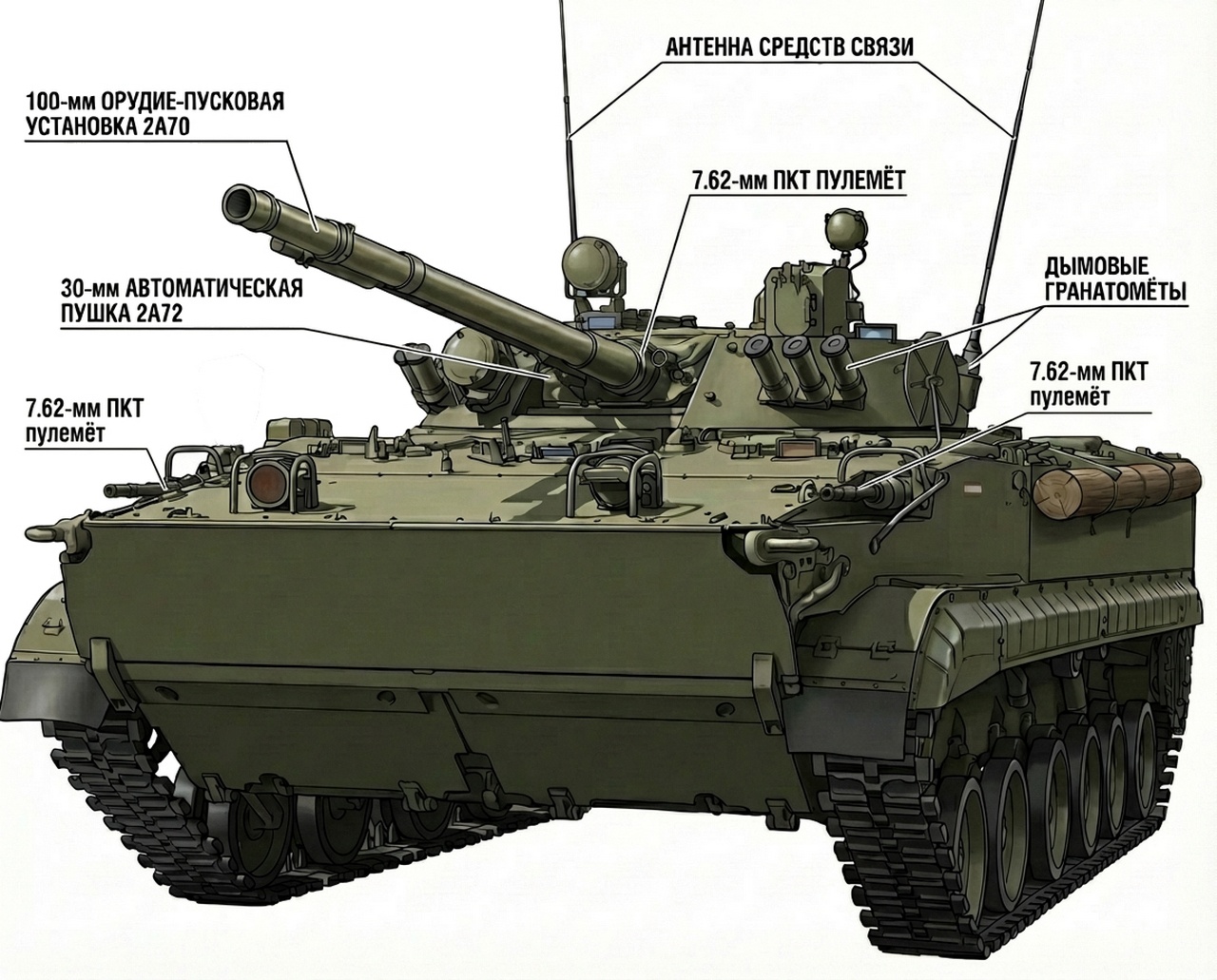 Судите сами. В своём базовом варианте БМП-3 несла: