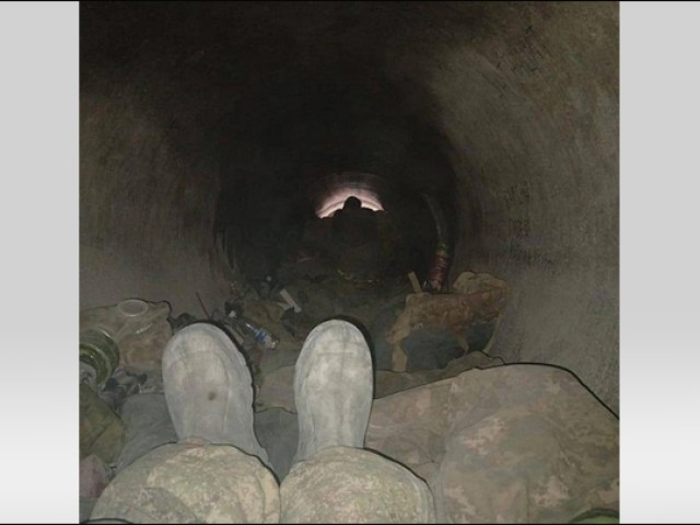 Выход из трубы в сторону украинских позиций перегородил подбитый БТР. Фото предоставлено Сергеем Серезлеевым