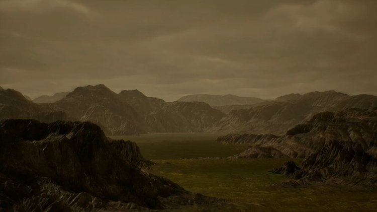 Художественное изображение Титана: углеводородное озеро и горы из водяного льда. Создано на основе данных миссии Cassini-Huygens. Источник: Jenny McElligott / eMITS