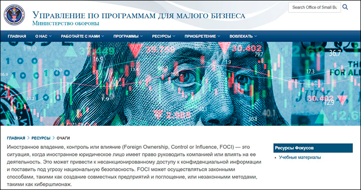 Скриншот страницы сайта business.defense.gov. Автоперевод