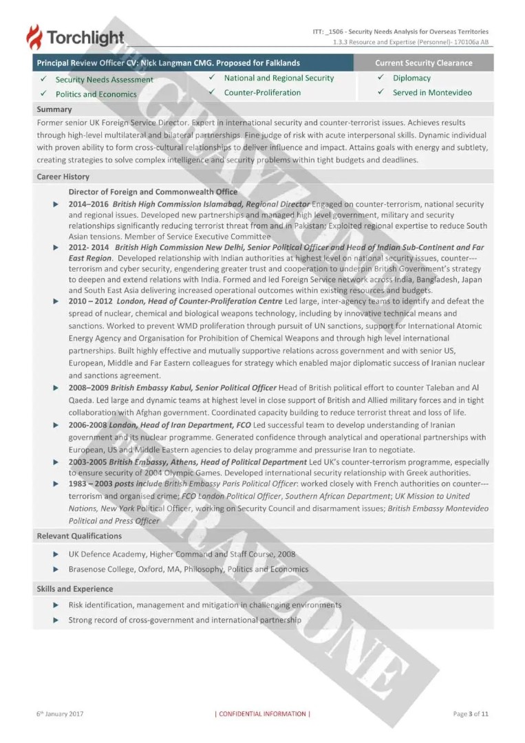 Grayzone обнаружила среди документов, к которым портал получил доступ, резюме этого британского оперативника, подробно описывающее его деятельность в британской разведывательной организации. Из биографии сотрудника МИ-6 Лэнгмана следует, что он «руководил крупными межведомственными группами по выявлению и пресечению распространения технологий ядерного, химического и биологического оружия, в том числе с помощью инновационных технических средств и санкций».