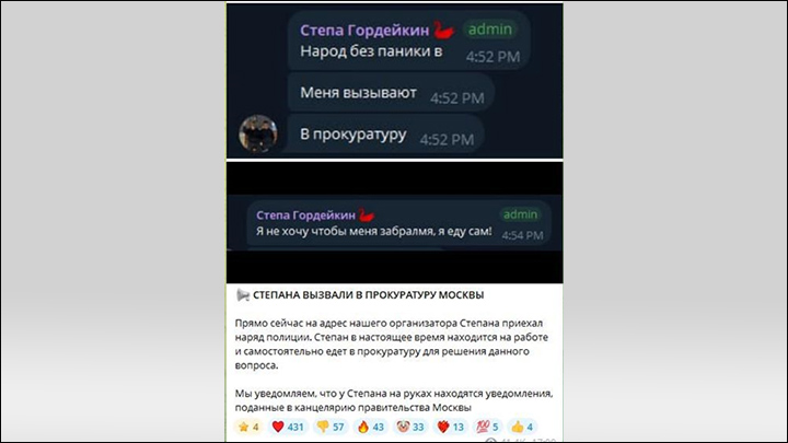 История с одним из приглашений на беседу в прокуратуру. Скриншот: аккаунт, связанный с проектом "Алый лебедь"