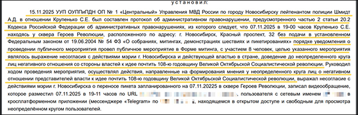 Впрочем, участвовали в "движении" и взрослые люди – допустим, некий журналист из Новосибирска Сергей Крупенько. Он известен своей защитой экстремистского ФБК** и организацией несогласованных собраний, на которых делает себе имя "оппозиционера". Причём ему, видимо, нет особой разницы, что это за собрания, – главное, что кто-то против чего-то выступает. Даже вот митинг в честь борцов-революционеров проводил всего полгода назад, за что отправился на 15 суток.