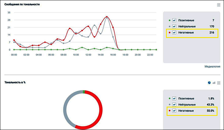 Так, в период с 00:00 до 16:00 29 марта на тему протестных акций (которых, отметим, как таковых и не было) появилось 345 сообщений в соцсетях (потенциальный охват аудитории – 63,6 млн человек) и 48 публикаций в СМИ (охват – 19 млн человек).