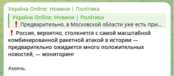 «21.10.25 17.41: «Россия, вероятно, столкнется с самой масштабной комбинированной ракетной атакой в истории — предварительно ожидается много положительных новостей, — мониторинг . Аминь.»