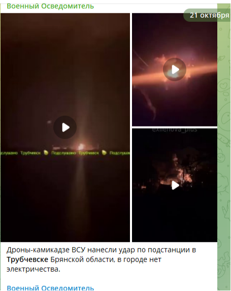 Были даже видеосообщения о повреждении беспилотником электроподстанции в Трубчевске.