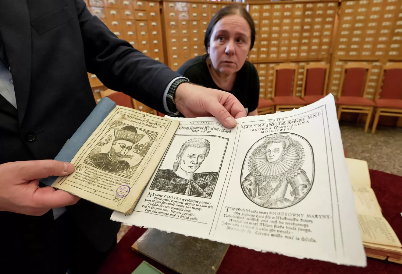 "Это душераздирающая повесть о том, как варвары — московиты — убили законного государя, абсолютного европейца, просвещенного монарха — Лжедмитрия I, а потом пытались убить и его жену — Марину Мнишек", — комментирует листок заведующая информационно-библиографическим отделом Российской национальной библиотеки Надежда Веденяпина.