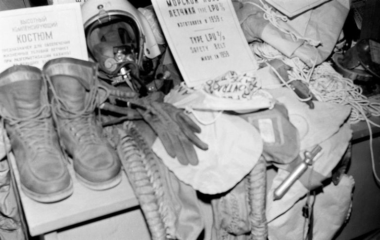 На фото: вещественные доказательства по уголовному делу американского летчика Френсиса Гарри Пауэрса, обвиняемого в шпионаже против СССР, на открытом судебном заседании Военной коллегии Верховного суда СССР в Колонном зале Дома союзов. Самолет-разведчик Lockheed U-2 под управлением Г. Ф. Пауэрса был сбит советскими ПВО 1 мая 1960 года над Свердловском. (Фото: Владимир Савостьянов/ТАСС)