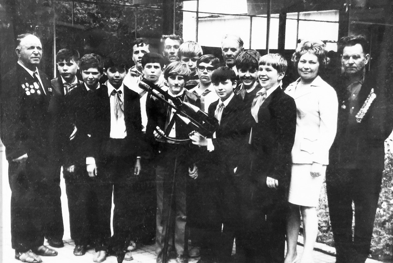«Красные следопыты» 6-го Б с макетом горной «катюши» (справа — классная руководительница Ирина Васильевна Шаркова) / © Из личного архива Михаила Серебрянского