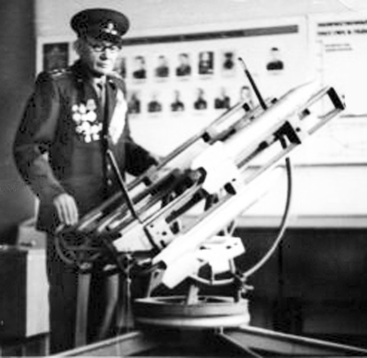 Хасан Ях-Яевич Суляев с макетом установки М-8-8 / © Из личного архива Михаила Серебрянского
