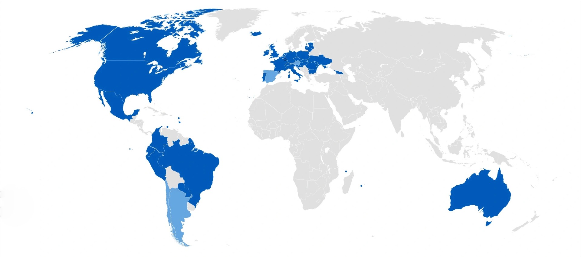 Страны о Голодоморе: синий - признавшие Голодомор геноцидом; голубой - признавшие Голодомор как акт истребления людей.