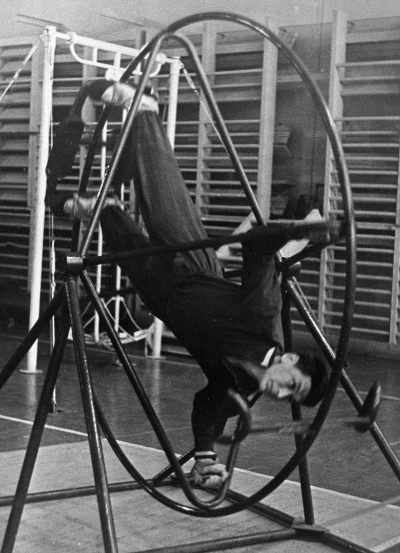 Врач-космонавт Борис Егоров на физподготовке в спортивном зале ЦПК в Звёздном Городке РИА Новости