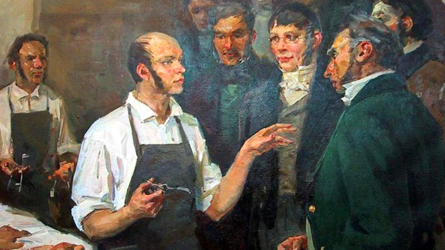 Как сформулировал великий Гёте, гений — это 1 процент таланта и 99 процентов пота. Николай Пирогов своей жизнью полностью подтвердил это определение. В 14 поступил, а в неполные 18 лет окончил Московский университет, в 22 стал доктором наук, а в 26 — профессором медицины. Совсем еще молодым человеком, практикуясь в Дерпте, создал фундаментальный труд «Хирургическая анатомия артериальных стволов и фасций», открывший новую эпоху в операциях на артериях и переведенный вскоре на все европейские языки. Позже в одном из писем жене он признался: «Люблю мою науку, как может сын любить нежную мать». Кстати, первая его невеста не стала супругой, поскольку однажды попросила жениха прекратить свои вдохновенные рассказы «об этих противных трупах».