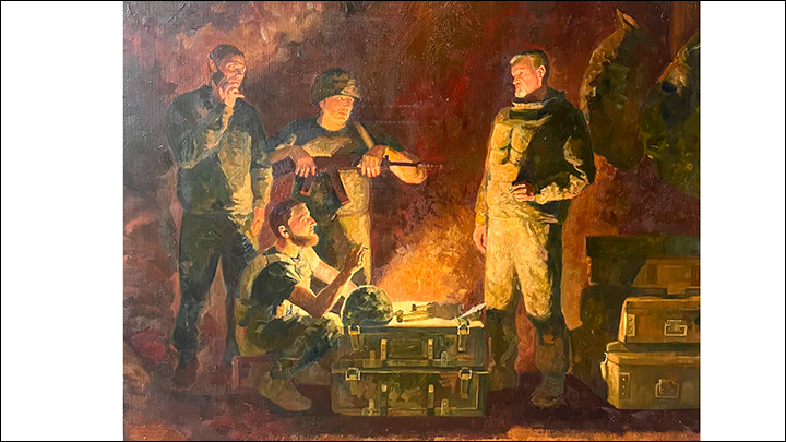 ФОТО: АЛЕКСЕЙ БУЖИН С БОЕВЫМИ ТОВАРИЩАМИ НА КАРТИНЕ ЕКАТЕРИНБУРГСКОЙ ХУДОЖНИЦЫ АНАСТАСИИ ЛУКАШИНОЙ "ПРИКАЗАНО ВЫЖИТЬ". ОНА ЗАНЯЛА ПЕРВОЕ МЕСТО ВО ВСЕРОССИЙСКОМ КОНКУРСЕ "ПО ПРАВУ ПАМЯТИ"