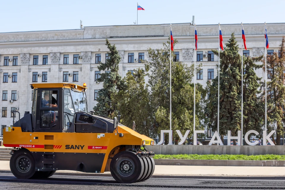 Замена дорожного покрытия на Театральной площади Луганска. Фото: Александр Река/ТАСС