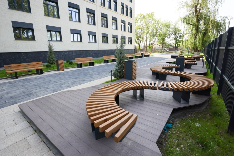 Территория Луганской городской поликлиники № 12, открывшейся после капитального ремонта. Фото: Александр Река/ТАСС