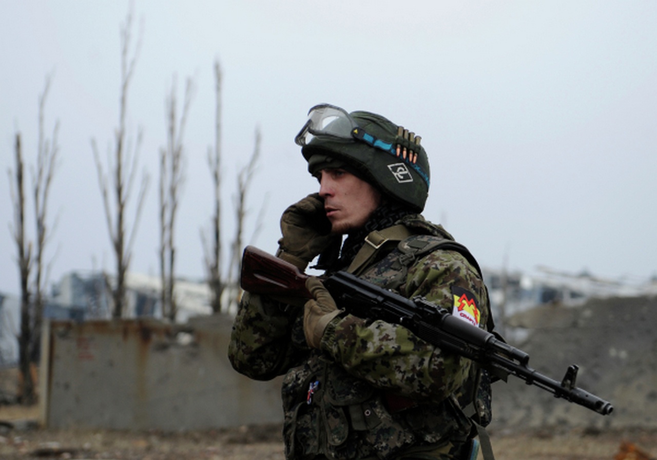 © РИА Новости / Боец батальона «Спарта» в разрушенном в результате боевых действий аэропорту города Донецка, 2015 г.