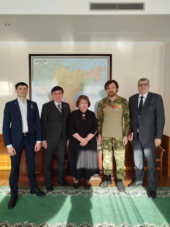 Очень интересной выдалась встреча с руководителем Администрации Главы и Правительства Республики Саха (Якутия) Георгием Михайловым и заместителем председателя Государственного собрания республики Александром Подголовым. Во встрече также принял участие Герой России Николай Евдокимов. Говорили о поддержке в республике участников и ветеранов СВО, журнале Главного военно-политического управления ВС РФ «Политрук», а также о новой фронтовой литературе. Как сопредседатель Совета по военно-художественной литературе Союза писателей России, сказал главе администрации, что в Якутии уже есть яркие авторы, пишущие на эту тему. Среди них стоит отметить Александра Седалищева, выпустившего две книги о героях этой войны в издательстве «Вече», Ивана Александрова, Степана Сивцева и других.