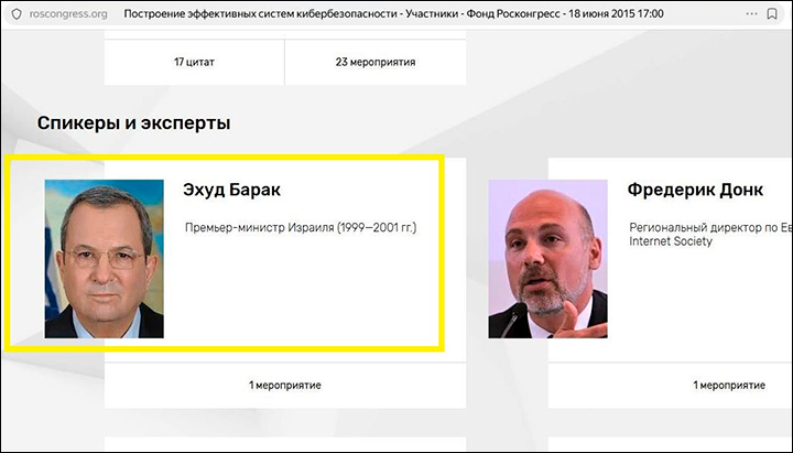 Эхуд Барак в числе почётных гостей ПМЭФ-2015. Скриншот: интернет-сайт roscongress.org