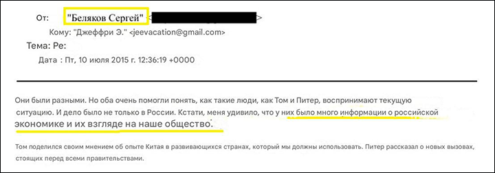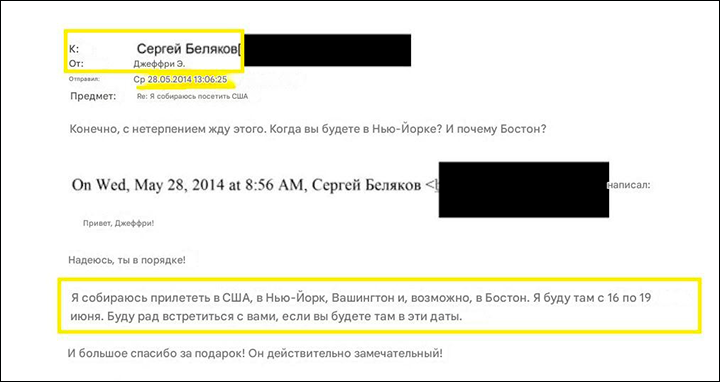 19 июня 2014-го состоялась новая личная встреча Белякова и Эпштейна. Содержание её неизвестно – однако отношения Сергея и Джеффри стали весьма доверительными. Настолько, что 21 июля, за две недели до скандального ухода из Минэкономразвития, Беляков сообщил Эпштейну, что обсуждал некую важную тему с Алексеем Симановским – на тот момент первым зампредом ЦБ.