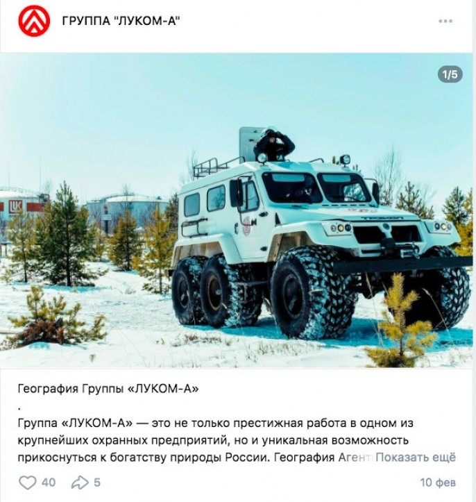 Первым гигантом ТЭКа, которому правительство разрешило создание корпоративной частной охранной организации, стал «ЛУКОЙЛ». Распоряжением Правительства Российской Федерации №3299-р от 2 ноября 2022 года «в соответствии с частью 1 статьи 9.2 федерального закона «О безопасности объектов топливно-энергетического комплекса» предоставить публичному акционерному обществу «Нефтяная компания "ЛУКОЙЛ"» право на учреждение частной охранной организации». У этой частной охранной организации «Луком-А» уже есть мощные джипы…