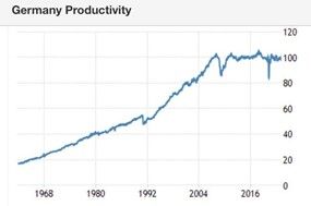 Проблемы в Германии начали нарастать вовсе не из-за отключения российского газа и украинского конфликта. Так, уже с 2005 года в стране перестала расти производительность труда. И это при том, что в Германии в среднем трудящийся ещё и работает меньше всех среди развитых стран Запада – около 1400 часов в год против 1700 часов в США, а в среднем по странам, входящим в Организацию экономического развития и сотрудничества (ОЭСР), – около 1650 часов (для сравнения: в России в среднем трудятся более 2000 часов в год, т. е. в полтора раза больше по времени, чем в Германии).