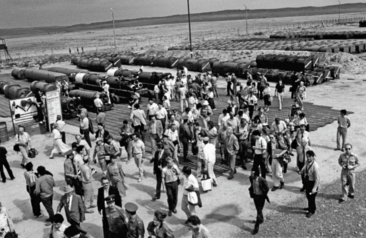 © РИА Новости / Советские и иностранные журналисты во время осмотра ракет, предназначенных для уничтожения согласно Договору по РСМД, 1988 г.
